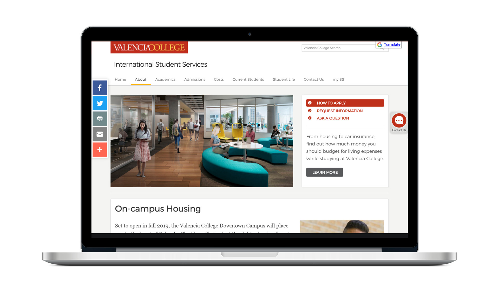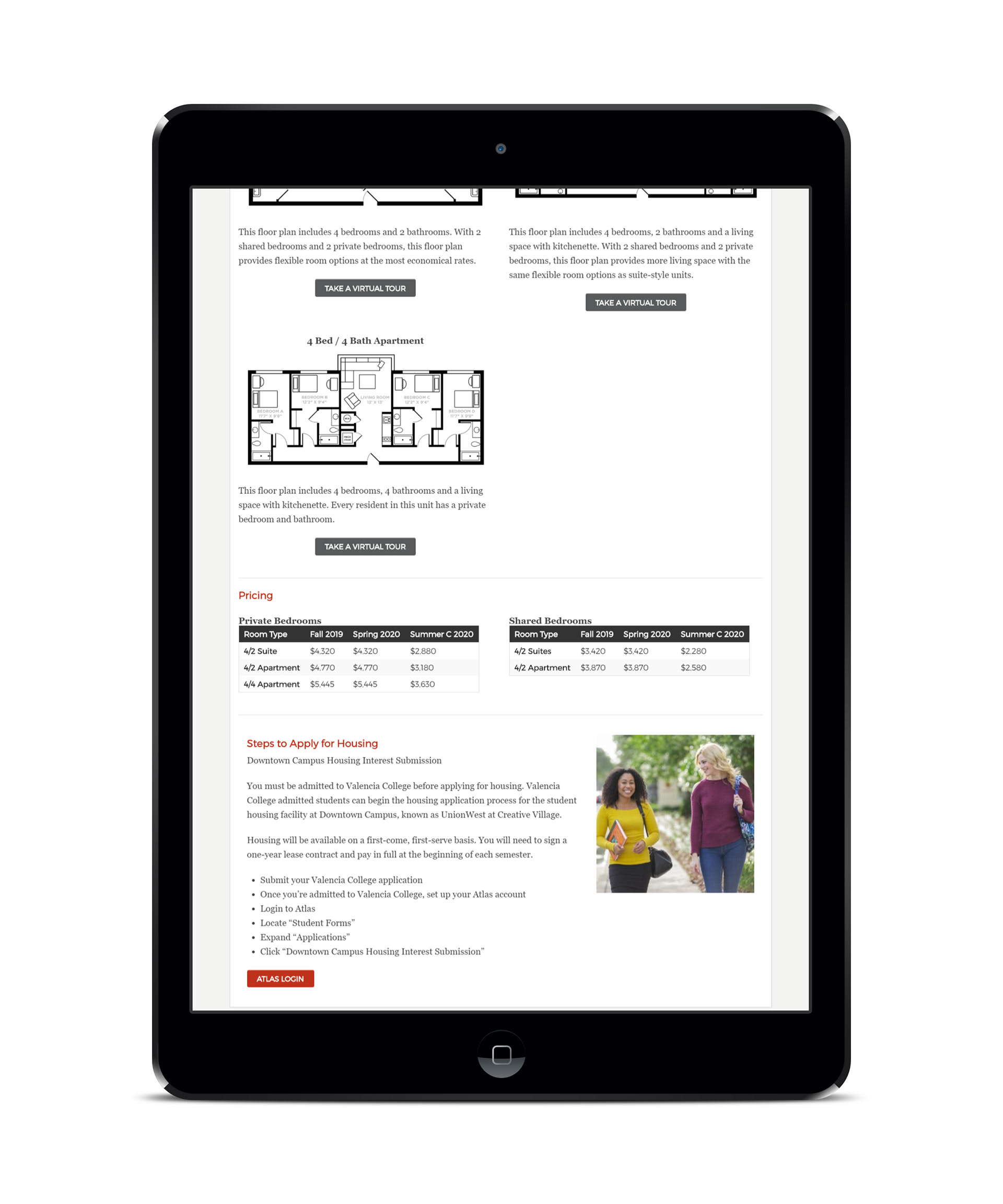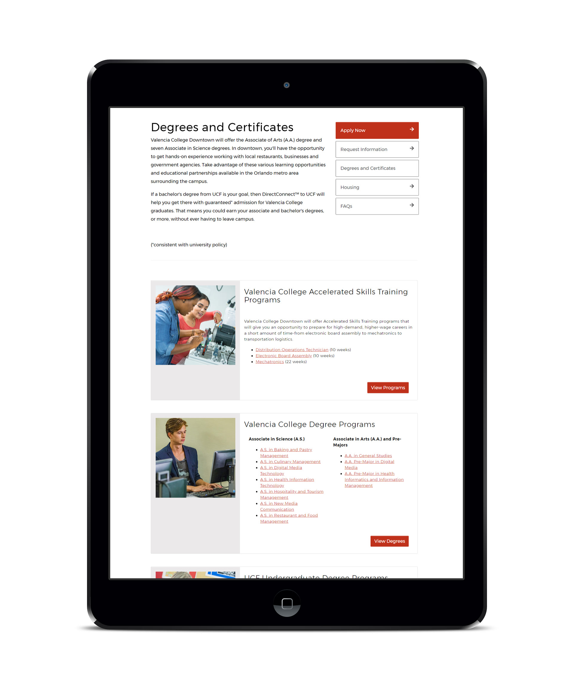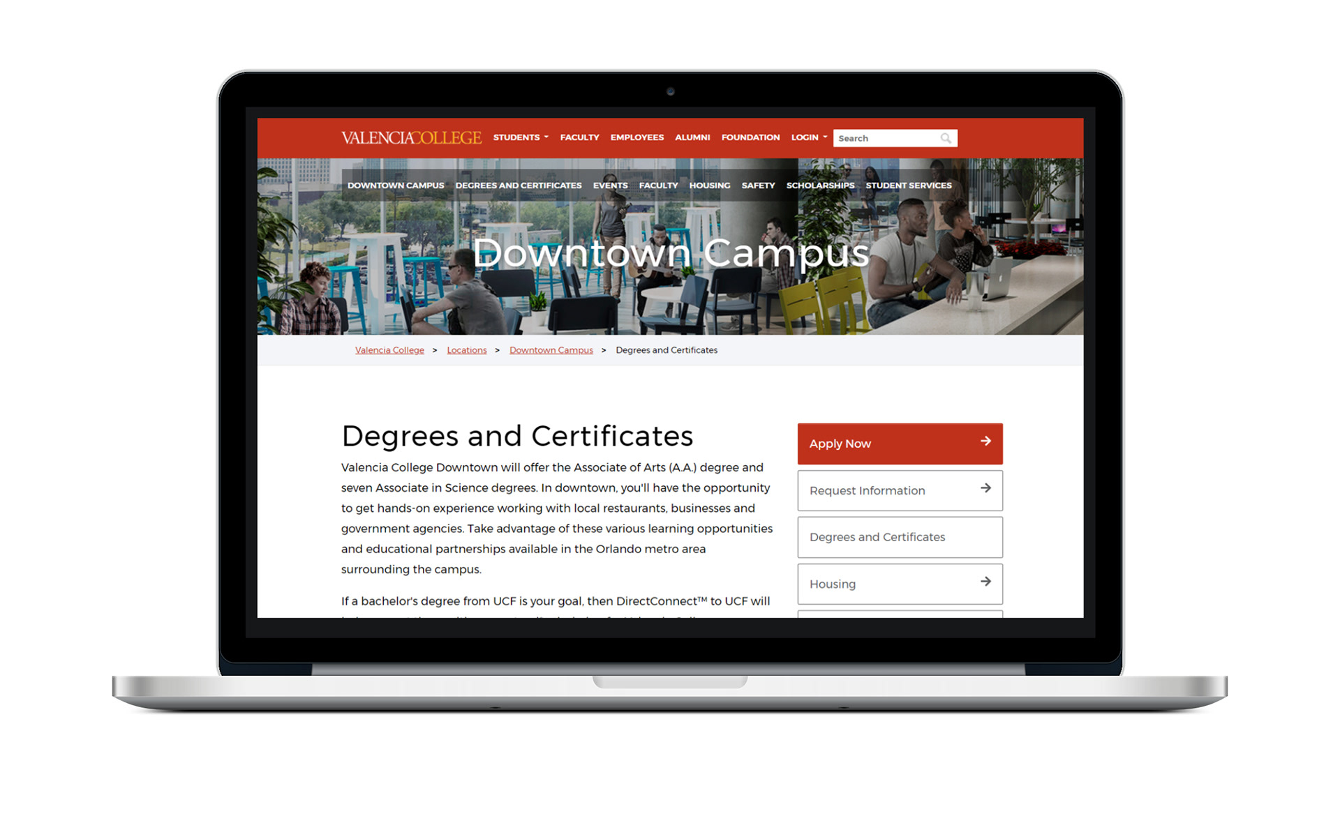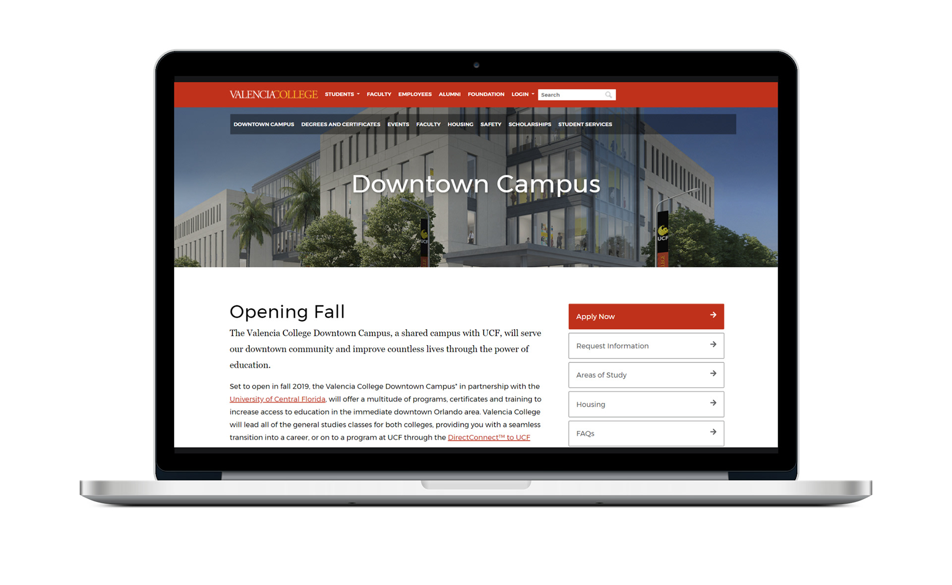 To make important information about the new Downtown campus readily available to current and prospective students, a mini site was developed to highlight key features.
